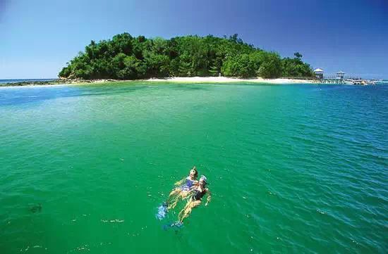 绿中海也被称为“幸福岛”,岛上风景秀美,景色宜人,有成片白沙滩,海水清澈见底,呈翠绿色。世界十大著名沙滩之一的翡翠湾(EmeraldBay)就在岛屿的西北方。