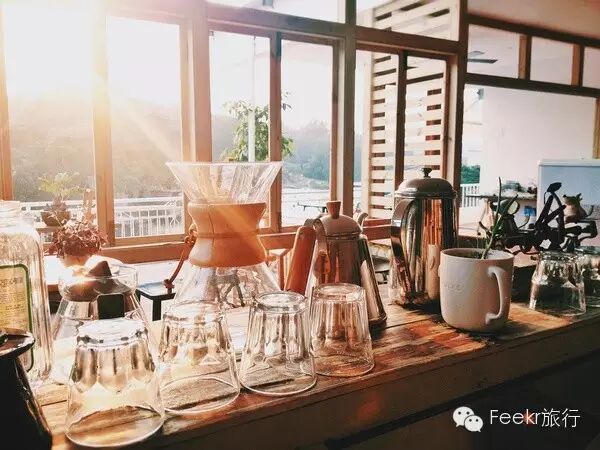 住在山茶花,有着复古却不凌乱的小厨房,你可以自己在这里炮制美食,开启一天的好心情。房间里巨大的阳台面对湖泊,风踩着山林疾步如飞,山中月色柔和云朵低翔。这里的趣味,就在于那种极为自然舒服的生活质感。老板说,之所以上山开旅馆,是因为没什么比得过东坪山这一山好景。