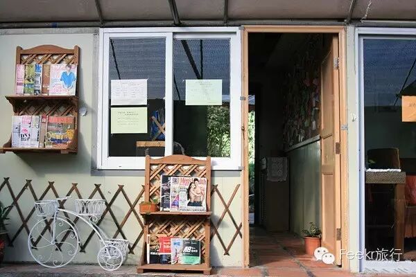 稍稍走进一些,田园休闲的气息就缓慢地浸润周围。窗边随意地挂着草编簸箕,顶上也是下乡淘回来的古董板画。不管几步之外的现代文明多发达,这里仿佛还是最朴素的闲适。在这里可以懒懒地窝在舒服圈椅里,晒着阳光,发着呆就像在家里惬意地呷一口红茶,漂浮一天一地的空灵。