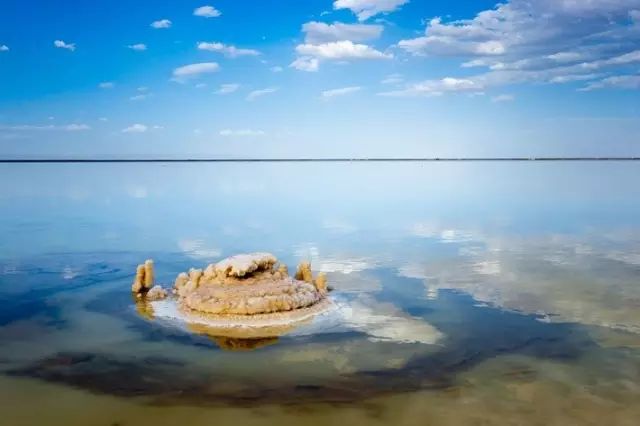 令人难以置信的是盐湖上还有一条长32公里的公路和铁路穿行而过,是一座浮在卤水上的“万丈盐桥”。
