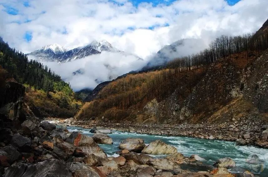 怒江大峡谷深都在2000米以上,大多数地段突破了3000米。再往北,太子雪山海拔6054米,梅里雪山6748米,峡谷更深了。 怒江大峡谷山高、谷深、水急,两岸白花飘香,山腰原始森林郁郁葱葱,冬春两季冰雪覆盖,景色如画。