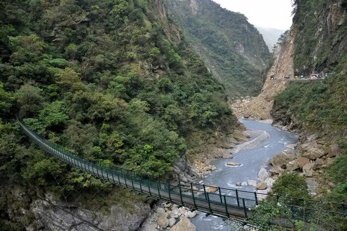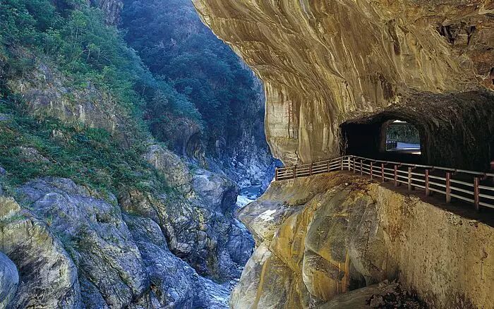 太鲁阁国家公园横跨花莲、南投及台中,以雄伟壮丽、几近垂直的大理岩峡谷景观闻名。沿着立雾溪的峡谷风景线而行,触目所及皆是壁立千仞的峭壁、断崖、峡谷、连绵曲折的山洞隧道、大理岩层和溪流等风光。大理岩受到立雾溪长期侵蚀下切作用与地壳不断隆起上升,形成几乎垂直的U型峡谷。公园内巨峰林立,从清水到南湖大山顶,落差达3742公尺,造就了层次复杂的植物林相,并提供野生动物栖息活动的空间。