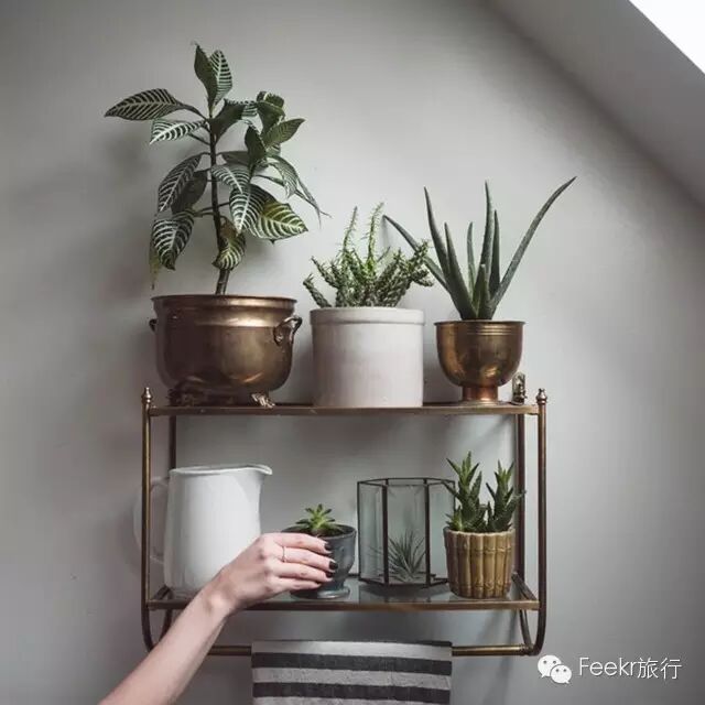 ▲金属感的器物种上绿植,反而使家里显得更有生命力~