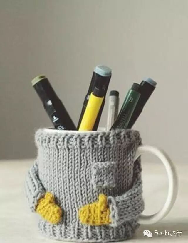▲天气凉了,给笔筒也穿件衣裳,瞧啊,他还卖萌~