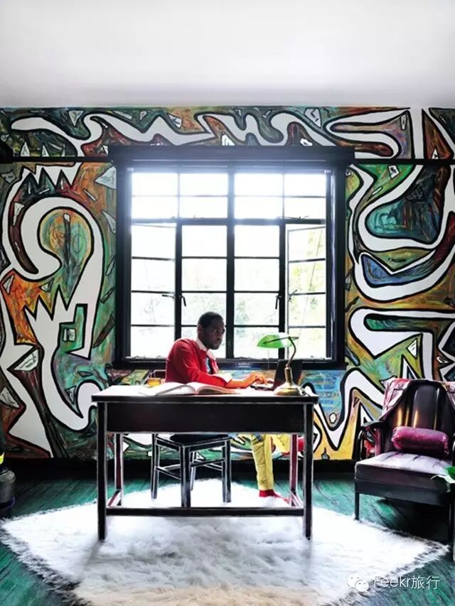 路边常见的回收废品的铁皮也被Craig捡来当成艺术装置装饰在了墙上。Craig把屋子的阳台装饰成了一个适合阅读和休憩的舒适空间,这也是他最喜欢的场所。