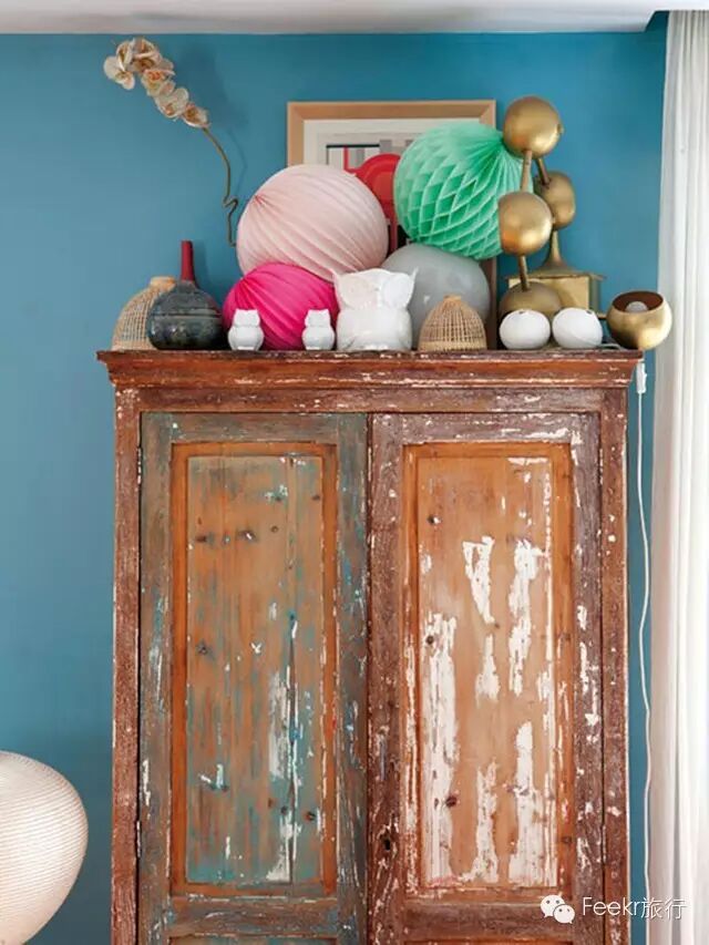 ▲柜子是老的,摆件又是现代富有设计感的,这样一种冲突美,你爱吗?