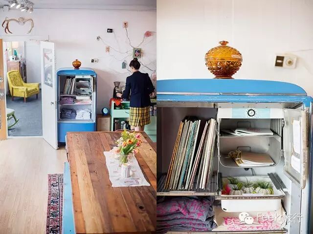 ▲旧冰箱摇身一变,成了vintage储物柜。