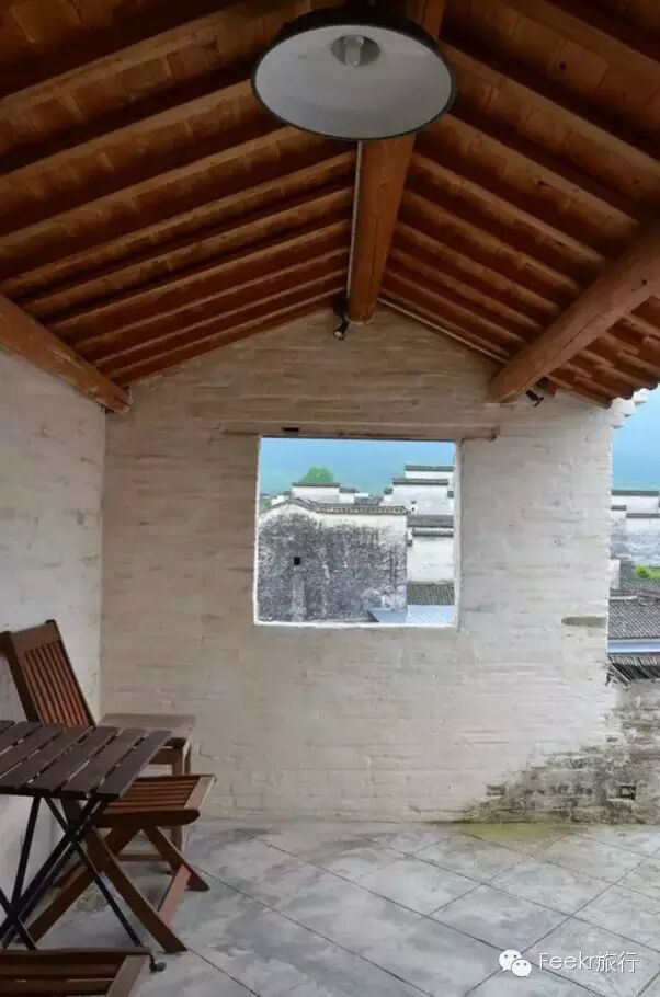 2003年,诗人寒玉离开上海,在西递开了猪栏酒吧的第一家店。这间民宿公共区域非常宽敞,院中心被主人设计成一个微型酒吧,长桌上铺着土布,瓶中盛放着采来的野花;二楼的书房摆满书籍,淡绿色的老花窗配上古朴的台灯,是喜欢夜读的客人最好的陪伴;三楼有着半开放式的观景台,适合在夜风沉醉的晚上看看西递全景,头顶星空,眼观明河。无星无月的日子里,泡一杯茶,做一个水墨徽州的梦也是好的。