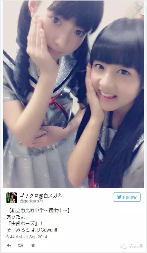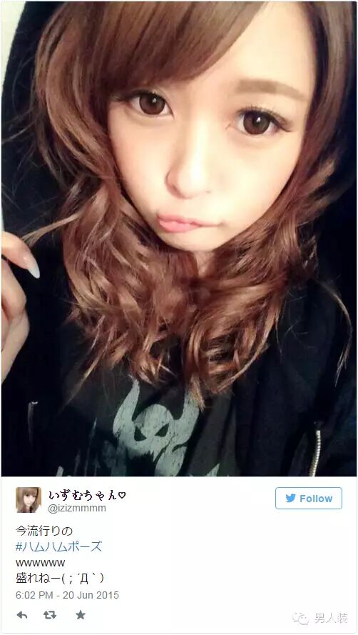 你所熟知的嘟嘴拍照在日本被称为鸭子嘴(アヒル口),虽然在日本也火过,但是因为“鸭子”本意就显得有点傻,于是很快就退流行了。如今流行的是这种“ハムハム”咬嘴自拍大法,这是一个拟声词,专门代表咬嘴唇时发出的声音,念作Hamu Hamu——