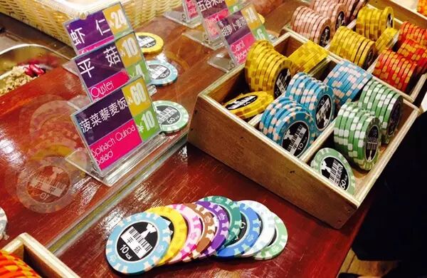 如果吃饭点菜是像赌场一样用筹码购买,是不是更有意思?在这里,你可以当一次上海滩‘赌神’,用筹码去选你想要吃的东西。店家还贴心地为大家标明了每一道菜的卡路里,这样不仅能吃得开心还能吃得放心啦!多种自制酱汁,天然无添加,自选超市般的点菜,有点逛菜市场的错觉。