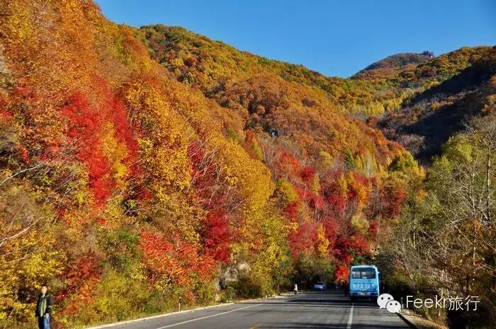 东北的秋色,我们显得陌生。其实,东北也是赏秋看红叶的好地方,尤其是自驾本(溪)桓(仁)线红叶谷这一段公路,路两旁是连绵的山峦,金黄色的落叶松,火红色的火炬树,赭黄的柞,酱紫的槭,墨绿的松,远看漫山遍野颜色各异的红叶高低错落很是好看。