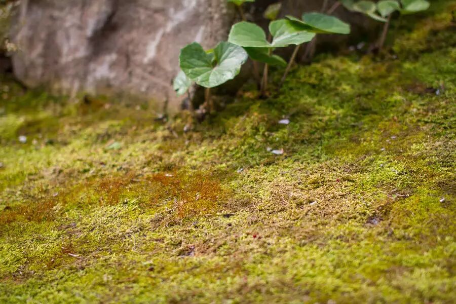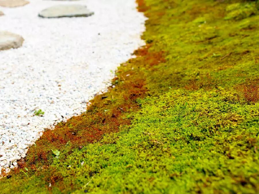分布于拈花湾庭院、池边、溪畔、树下的苔藓,或许是最不起眼的,却是营造禅意最重要的因素之一。苔藓受空气、阳光、水分、土壤酸性等多种因素影响,很难大面积移植成活。上海世博会虽有推荐,但是国内尚无成功先例。这也注定拈花湾的苔藓铺植,是一个“品质偏执狂”才会干的事。