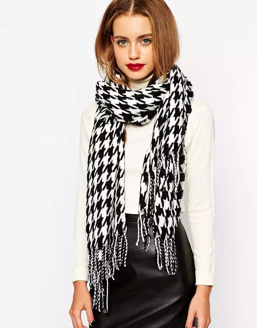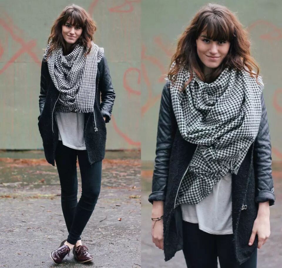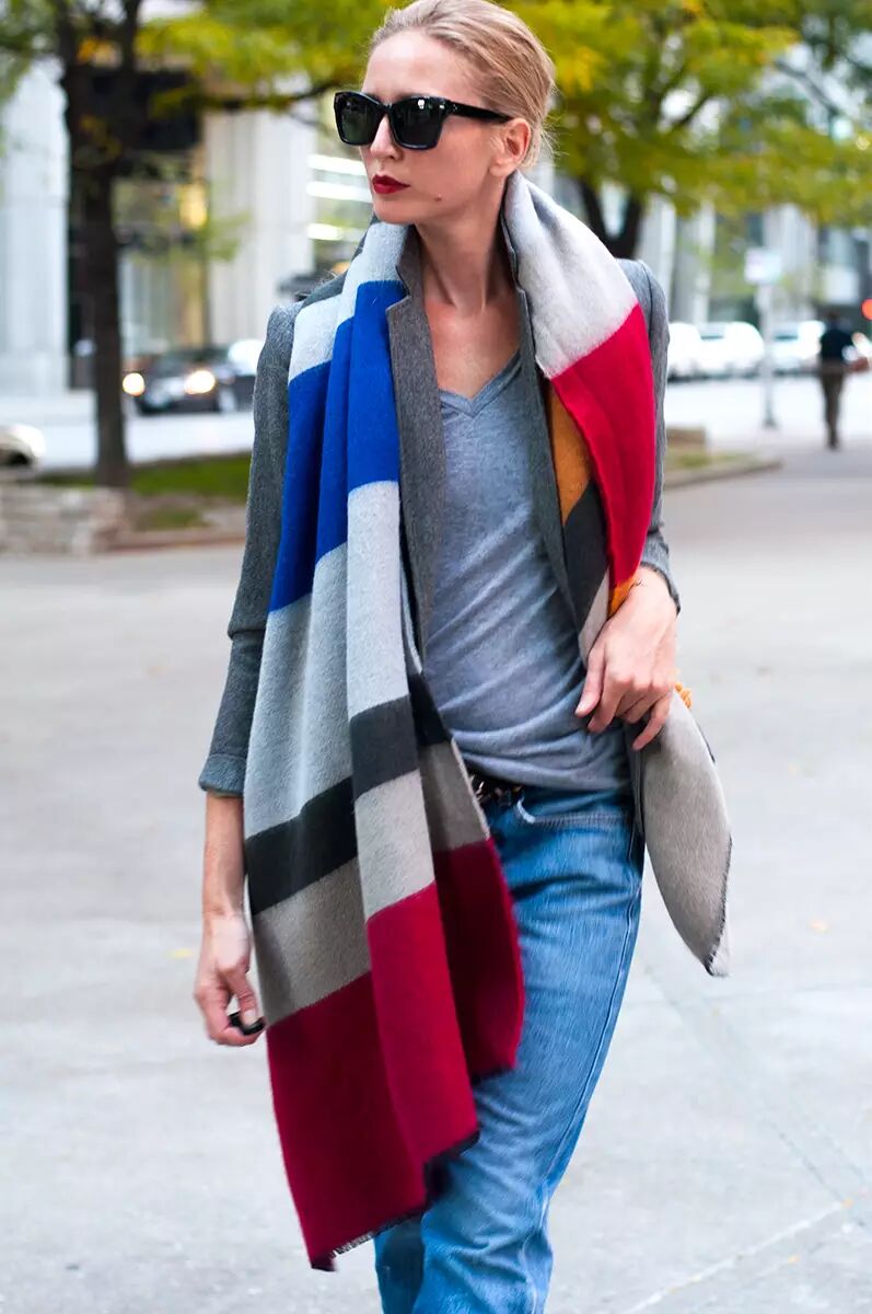 拥有这样一条围巾,就不需要考虑什么衣服搭配问题了,大衣毛衣风衣羽绒外套,想搭什么就是什么。往肩上一披,还能省下买披肩的钱,一个拉风的造型就搞定了。