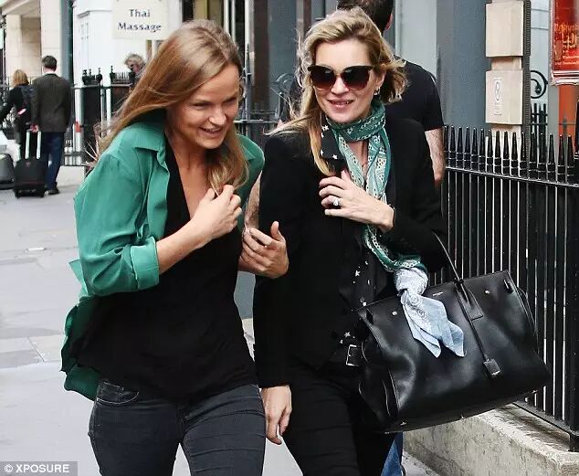 时尚界永远的灵感缪斯,女神 Kate Moss 也是窄丝巾的忠实拥护者,在她的身上,窄丝巾给人的感觉更加朋克。
