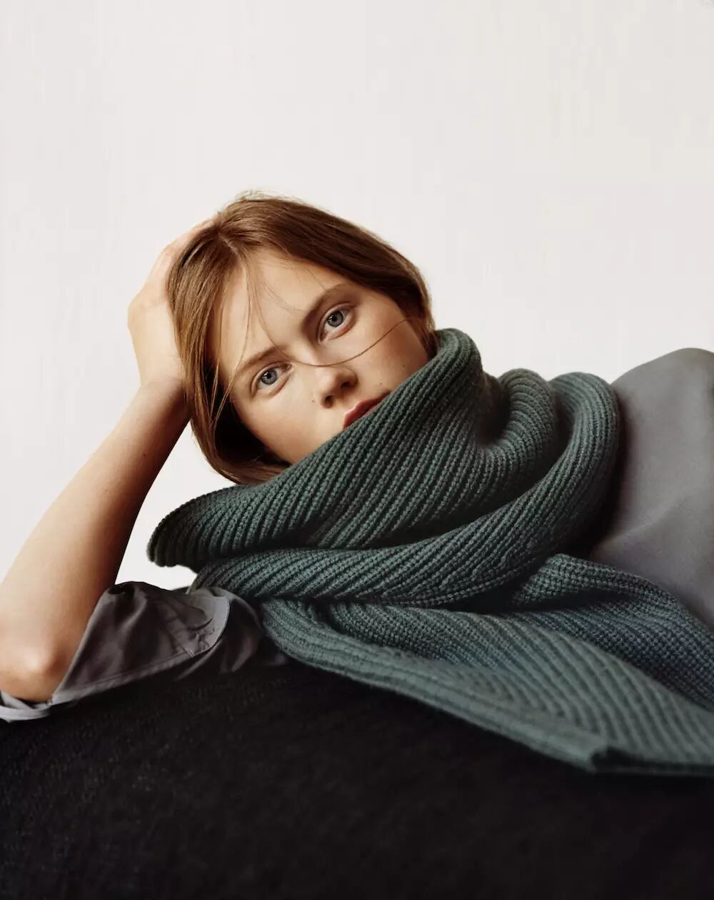 这是 Uniqlo 优衣库 和 Hermès 前设计总监 Christophe Lemaire 推出的联名力作 Uniqlo x Lemaire 系列,墨绿色的毛线大围巾高级感满满。用 Uniqlo 的钱买爱马仕的设计,300 多软妹币就能买得到了。
