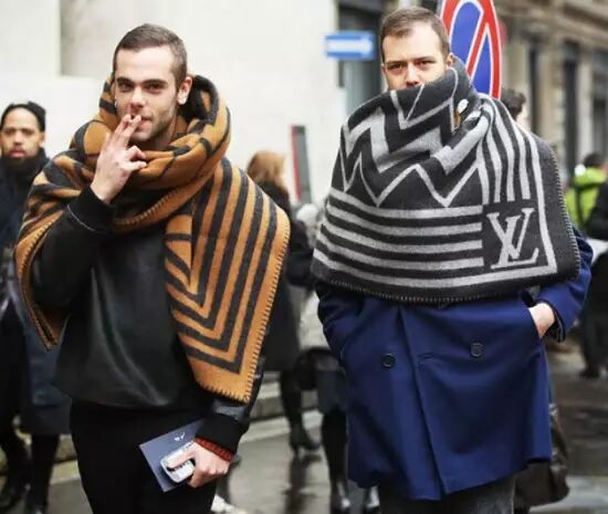 像这种围巾,做情侣款的搭配是最棒的,男生女生戴一样好看。往脖子上随便一披,整个气场就上来了。而且最重要的是真心暖啊。