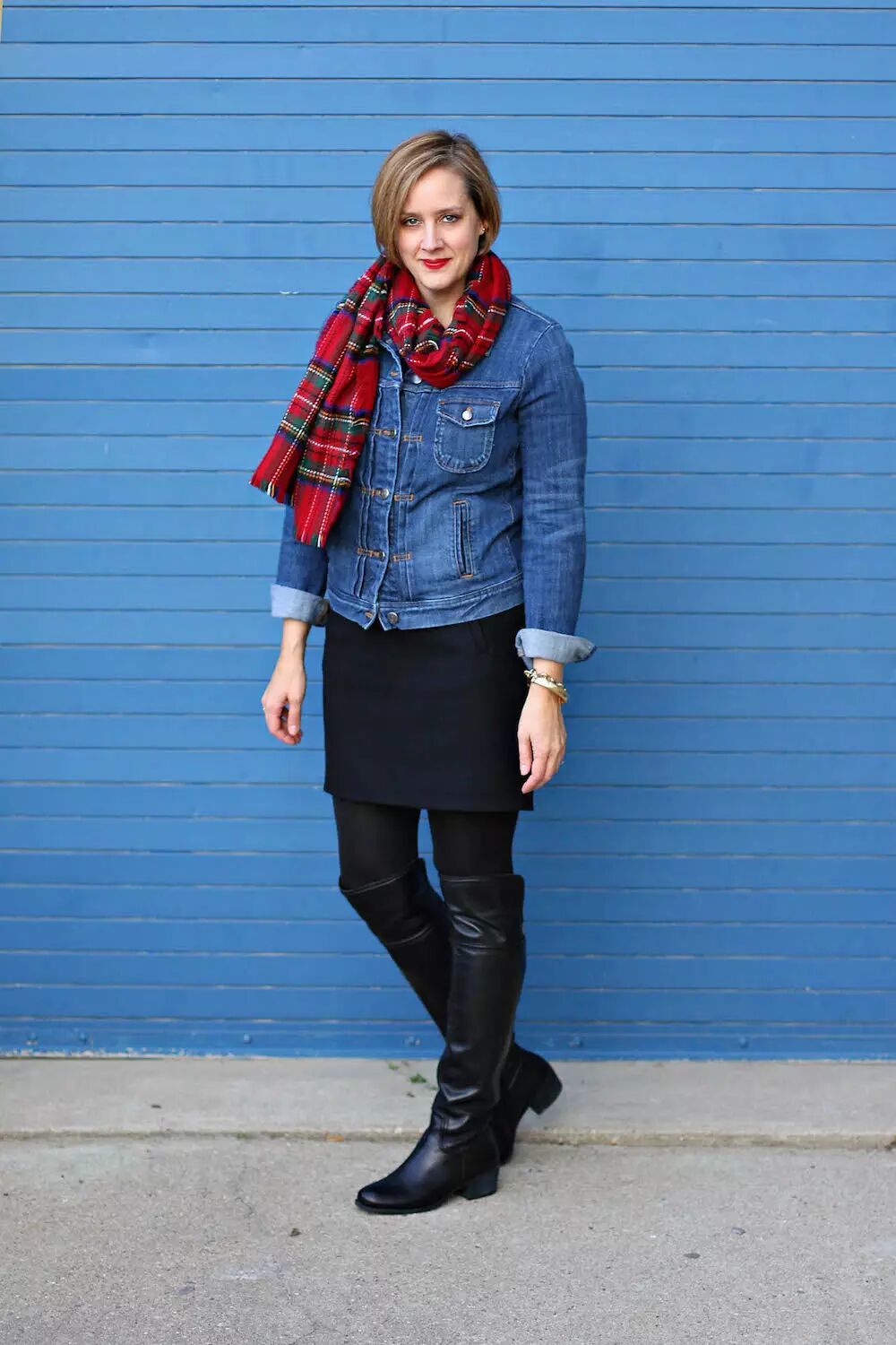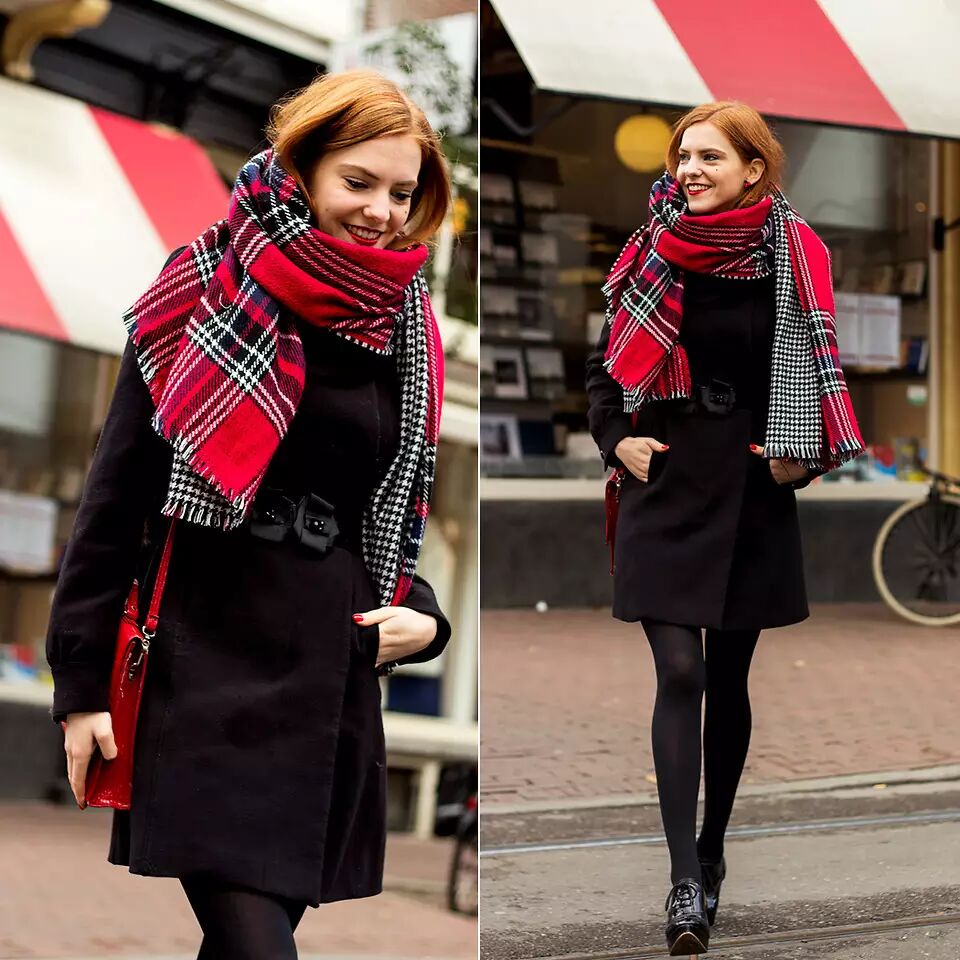 觉得在秋冬一身黑太沉闷,来一条火红的苏格兰格子点缀点缀,整个人都精神起来了。
