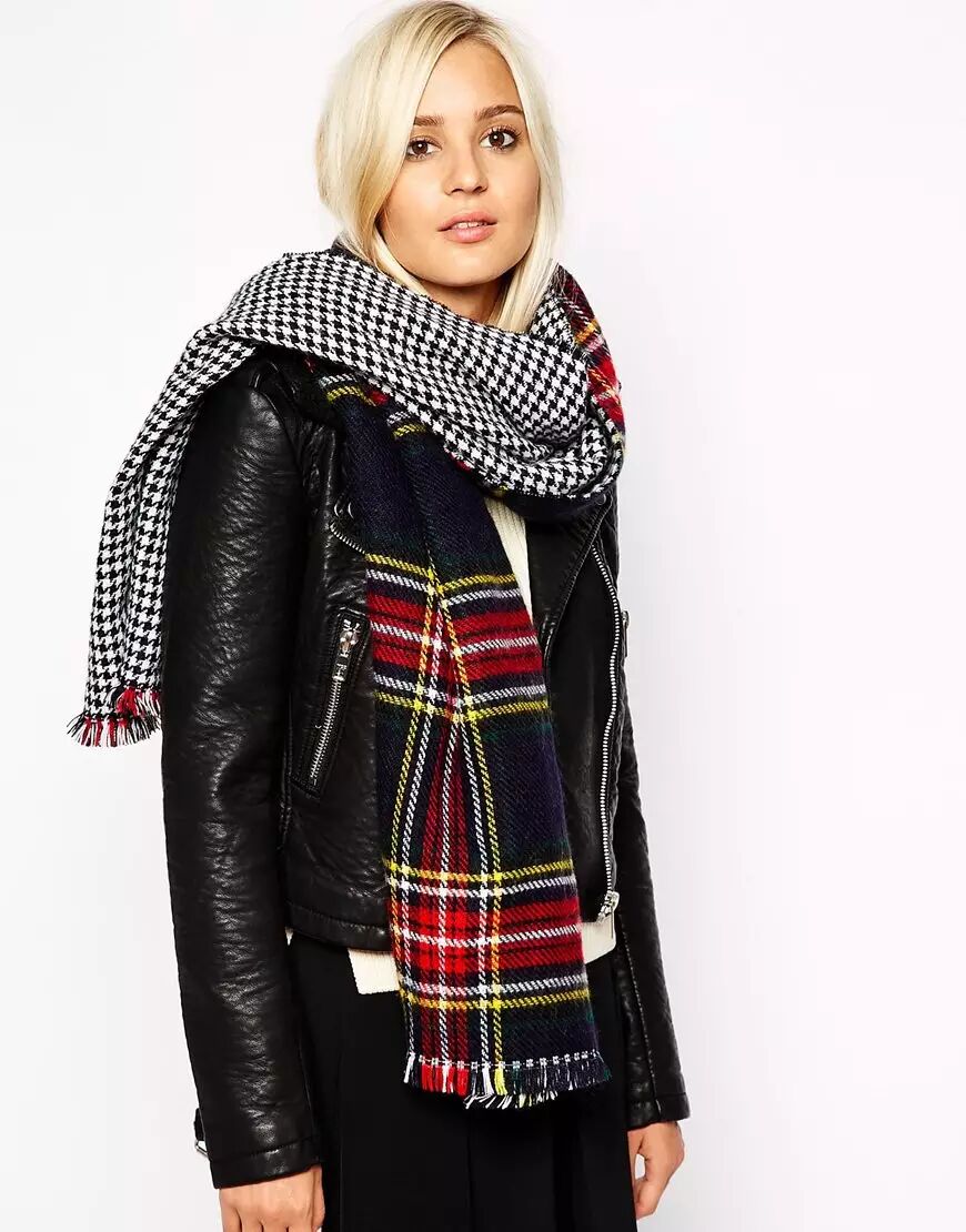 觉得纯色太素,希望作为配饰的围巾可以多点花样?那么这个超经典的图案绝对是你的选择,我说的是格子。