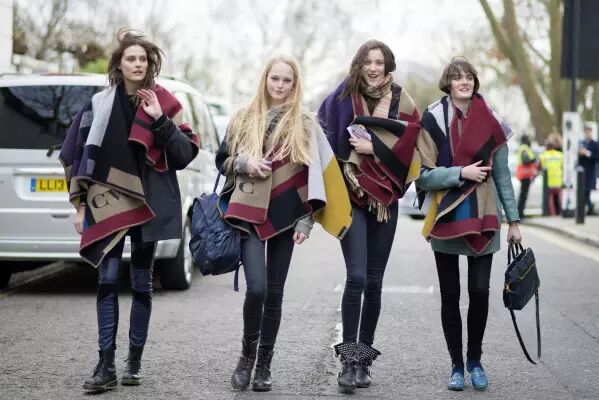 其实这种大毯子披风,好几年前也曾火过一阵子,但随着 Burberry Prorsum 2014 秋冬系列这条 Blanket Poncho 的发布,它又重新火了起来。