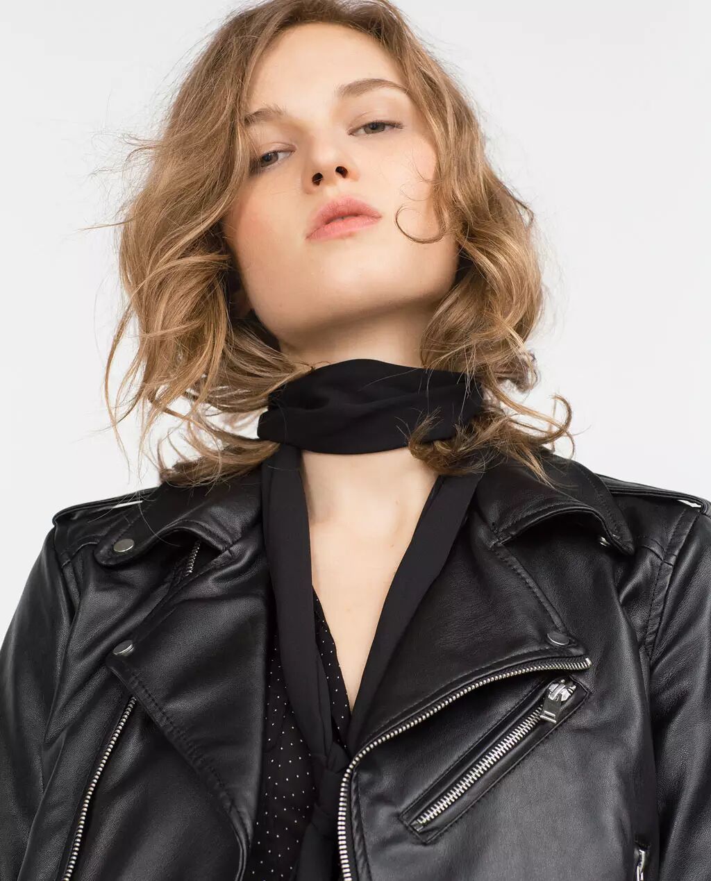 最喜欢这一身,皮衣与窄丝巾的搭配,朋克范儿满满。不得不说,皮衣也是秋冬过渡季的标配外套,如果衣橱里没有这件单品,就要赶紧入手了。