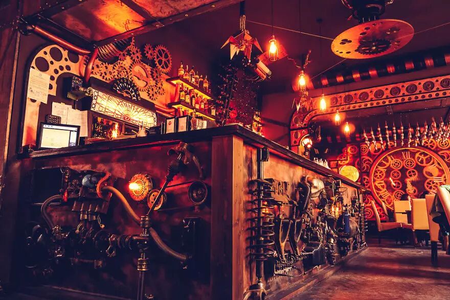 位于罗马尼亚的 Enigma,号称是全世界第一间也是唯一一间以动力蒸汽庞克为主题的酒吧。这间酒吧由本地设计师 Alexandru Tohotan 和 Zoltan Zelenyak 创建,充满科幻和复古感觉的装修,带我们重新体验当年狂热又硬朗的机械化工业时代。