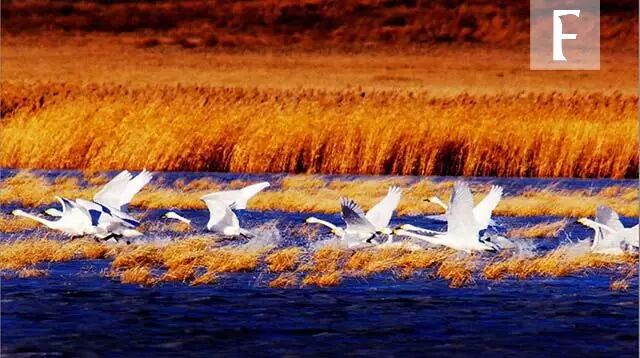 秋的凉爽里,纷纷扬扬的五彩纷呈里,候鸟也在迁徙到越冬的栖息地中。而淖尔这个依山而居的地方,则成了天鹅、大雁等珍稀候鸟迁徙的必经之地。芦苇丛生,满眼的翠绿,碧波泛滥,涟漪闪耀,大批天鹅从十月开始便如期而至。一群群洁白的天鹅在湖面上,或成群结队、或双双两两、或觅食、或戏水、或温情脉脉地交颈婆娑,啼鸣声声,此起彼伏,荡漾出了11月最震慑心灵的天鹅湖宁静之美。