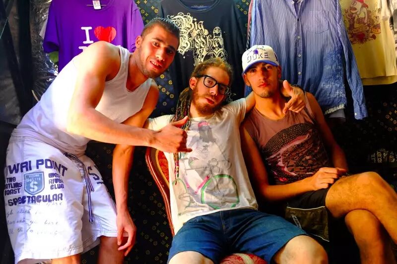 Fez的三天,我花费了大部分时间和Aziz还有他的侄子,他的一群好哥们儿晃荡在他家门口的精品服装店内。这里可以作为这群无所事事的年轻人的秘密基地,一般我们会关上门,插上锁,打开排风扇,就着昏暗的灯光打开那台只要一运转就会如喘着粗气般的15寸球面台式机,放上一些Bob Marley的歌曲,让Peace&Love充满在这小小的六平米小屋内。