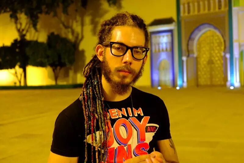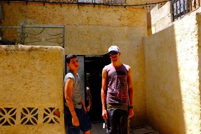 当司机拉响了汽笛,预示着九个小时的龟速行驶后火车终于到达了此行的终点——摩洛哥北部城市Fez。在这里我很幸运的找到了能接待我的沙发主人Aziz,他今年24岁,在家门口经营着一家服装精品店,还给自己和别人纹身及给自己和别人去除纹身赚些零花钱。他和别的阿拉伯青年很不同,胳膊后背小腿都是他给自己设计的纹身;还有,他和大部分留着寸头的阿拉伯青年也不同,他把头发染成了黄色,然后自己设计了脏辫造型,颇有几分嬉皮的感觉。