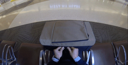 Barracuda 行李箱还有一个巧妙的设计,用户无需把拉链完全拉开,就能轻松取出所需物品。像图中取出笔记本的过程,只需 1、2 秒即可完成。这个设计虽简单,却十分有用。