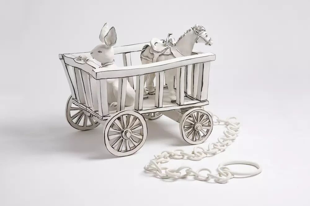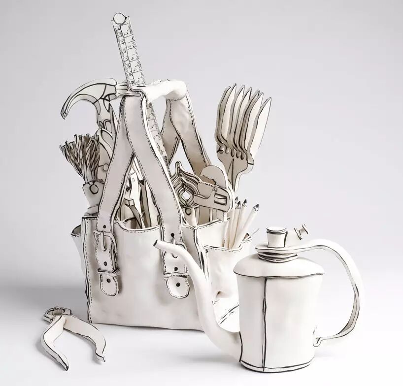这些歪歪扭扭的俏皮作品,如果你认为都是用图纸做出来的,那就大错特错了。伦敦陶瓷雕塑艺术家 Katharine Morling 创作了这组用粘土烧制而成的陶瓷雕塑作品,但无论形态还是质感都让人误以为是插画艺术。