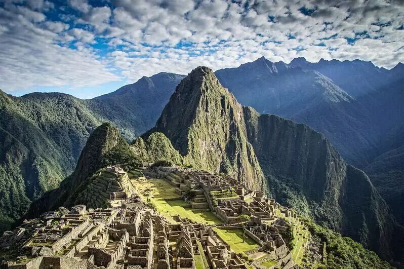 马丘比丘是一座名副其实的“天空之城”。它在印加语中意为“古老的山巅”。古城海拔2280米,两侧都有高约600米的悬崖,峭壁下则是日夜奔流的乌鲁班巴河。如此险峻的地理位置令马丘比丘躲过了西班牙殖民者的侵扰,却也让后世的考古学家们难寻其踪迹。直到1911年前,美国耶鲁大学的宾格教授才在一次偶然的机会中发现了这座半掩于荒草中的城池。由于其圣洁、神秘、虔诚的氛围,马丘比丘被列入全球10大怀古圣地名单。