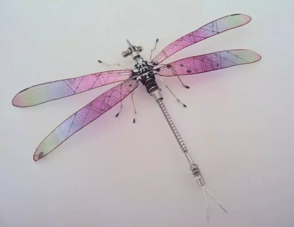 把电路主板作为驱赶,电阻变成触角和腿,当然还有美丽的金属翅膀……经过一翻拼凑组装后,一只只活灵活现的蝴蝶、蜻蜓、蝗虫就诞生了。这些被赋予了新生命的废旧部件,就好像破茧而出的蝴蝶,绽放出耀眼光芒。