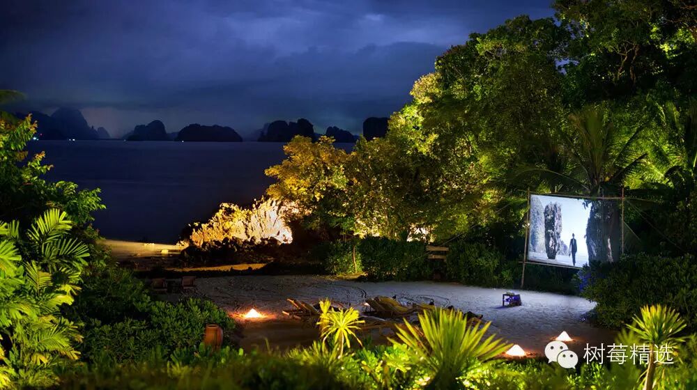 这间六善酒店(Six senses)位于距普吉岛不远的,攀牙湾中间的瑶诺岛(yao noi,又称小长岛)上。酒店拥有一座露天影院,就在热带丛林遍布的海滩上,每周三放映老电影,屏幕会慢慢从水面上升起,配上周围的山水大片,特别奇幻。作为007的外景拍摄地,能在这里看一场007电影,想想都是一件超级酷的事情!