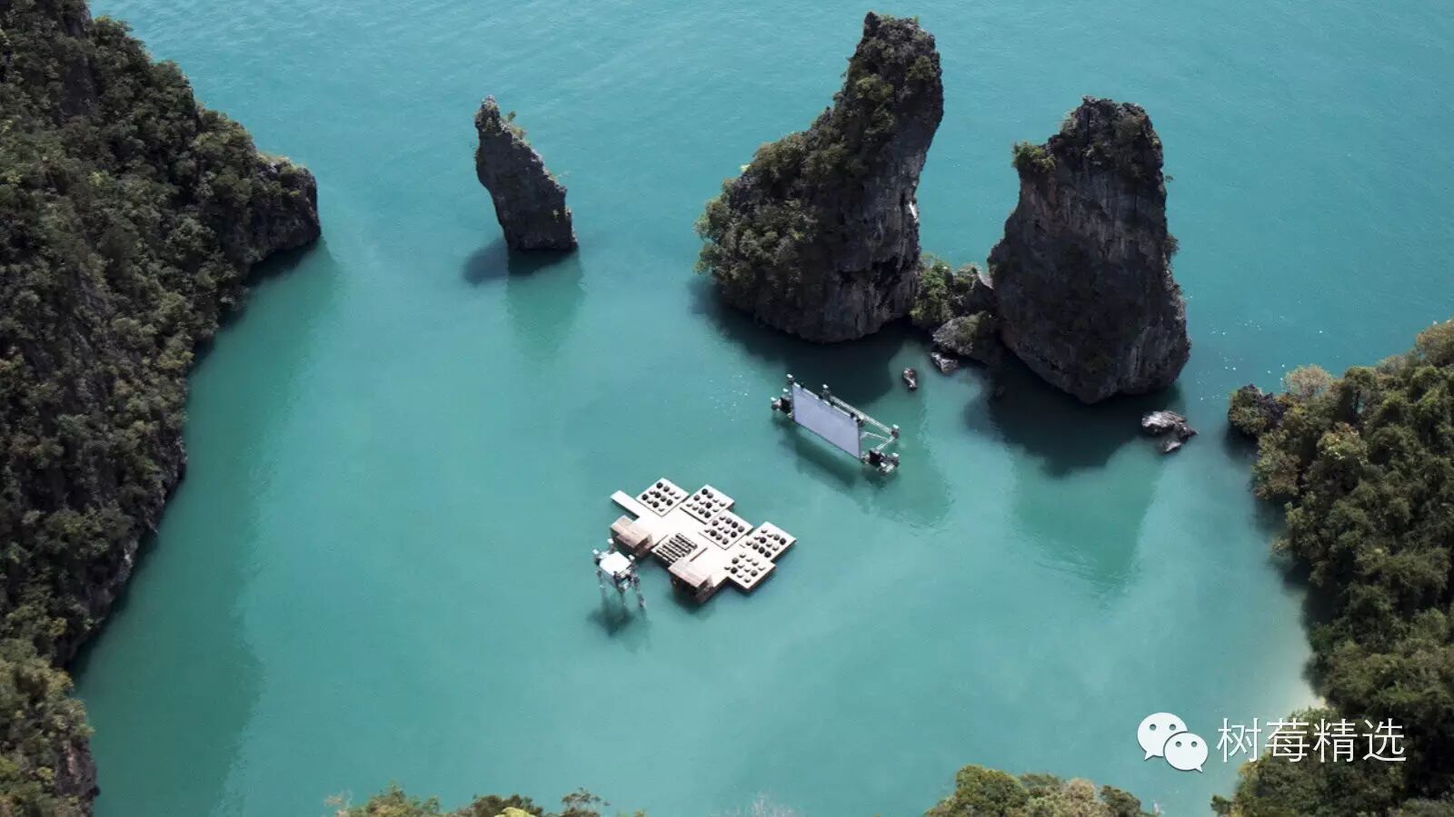画外音:除了酒店的电影院,这里还有一座惊艳的ArchipelagoCinema,光看到照片就让人有“wow”的感觉!就在攀牙湾中间的一弯泻湖之上,漂浮在翡翠色的海水中,这是为瑶诺岛电影节而特别搭建的,不过如今还在不在就不是很清楚啦。光看看照片,也是够难忘。