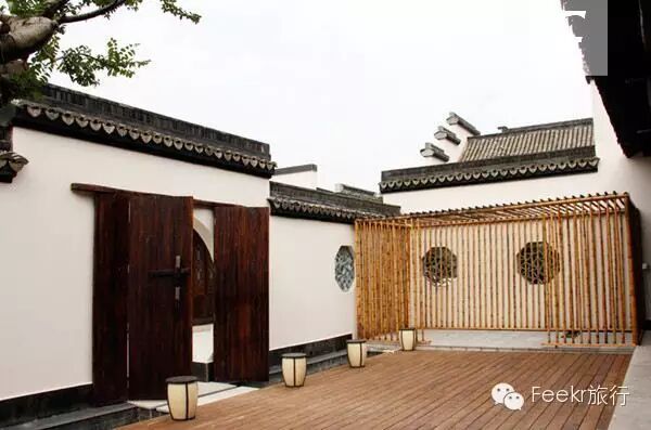 在园内闲逛,结识了一位住在谭府的朋友,顺便也参观了谭府客房。这里延续着传统的徽派建筑风格,门前庭院深深,大红灯笼下的木门和老式的木栓铜扣都有着浓重的文化色彩;乌木房梁有徽派木雕,洗手台方正若徽砚;客厅可煮茶小酌,窗外可欣赏竹影婆娑,院内可耳聆自然之音。