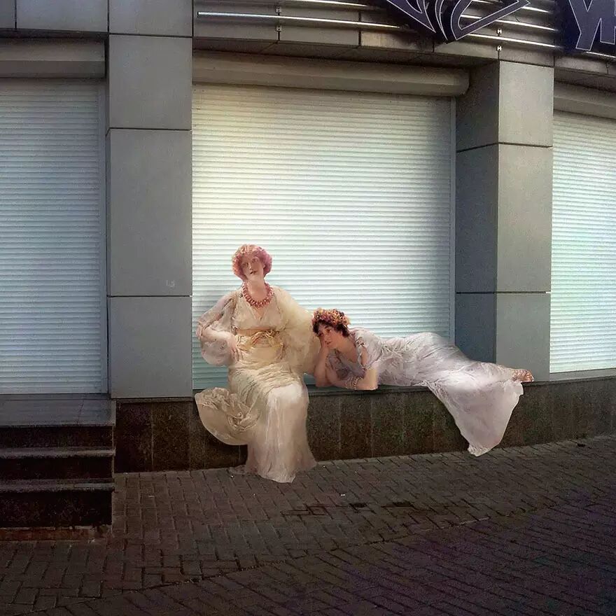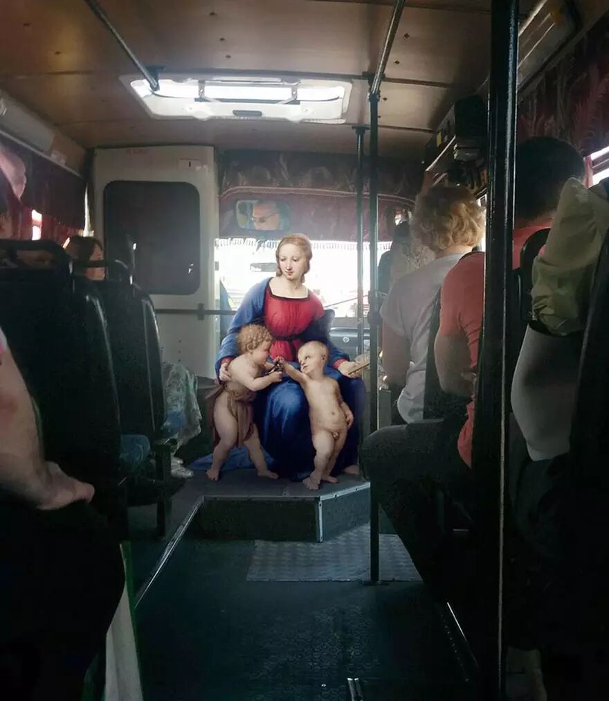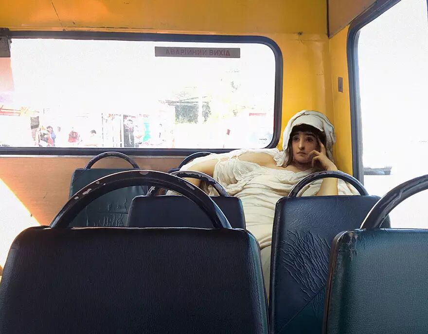 众所周知,西方油画里的经典人物都拥有体态丰满的身躯和一双双翅膀,这些让人羞羞的肉体与现代生活画面形成了鲜明的对比。试想象一下,如果你在地铁、公交、大街还有酒吧里看见裸体的众神乱入,会不会 hold 不住?