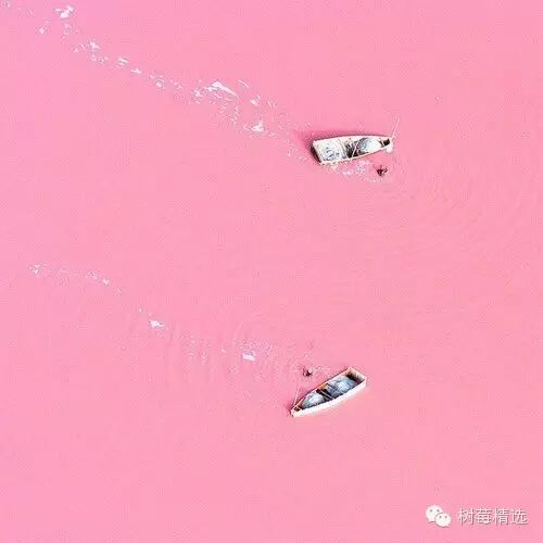 我们周末都会去粉红色的湖里面畅游:
