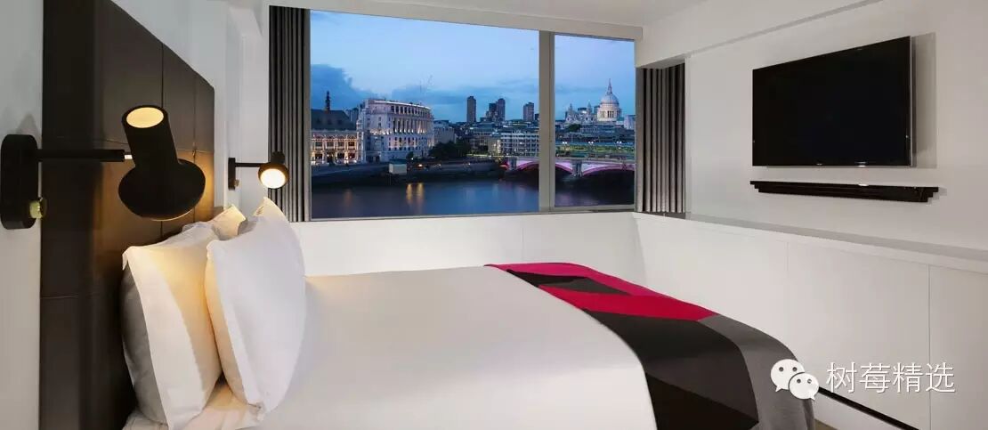 从酒店359个房间和套房都可观赏到美丽的泰晤士河景和伦敦城市景色,房间内的抽象几何线条充分体现着蒙德里安绘画风格。