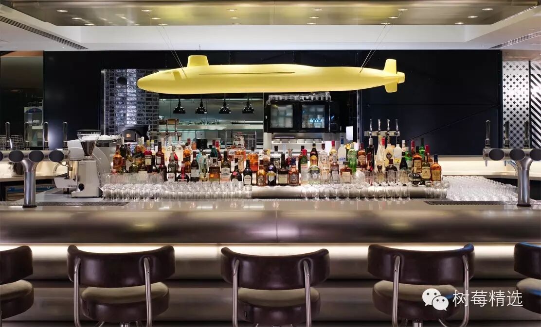 ▲ 酒吧的名字借鉴了 “ 海运集装箱 ” 名号,吧台上还为颇为点题地悬着一艘披头士唱过的 “黄色潜水艇”。