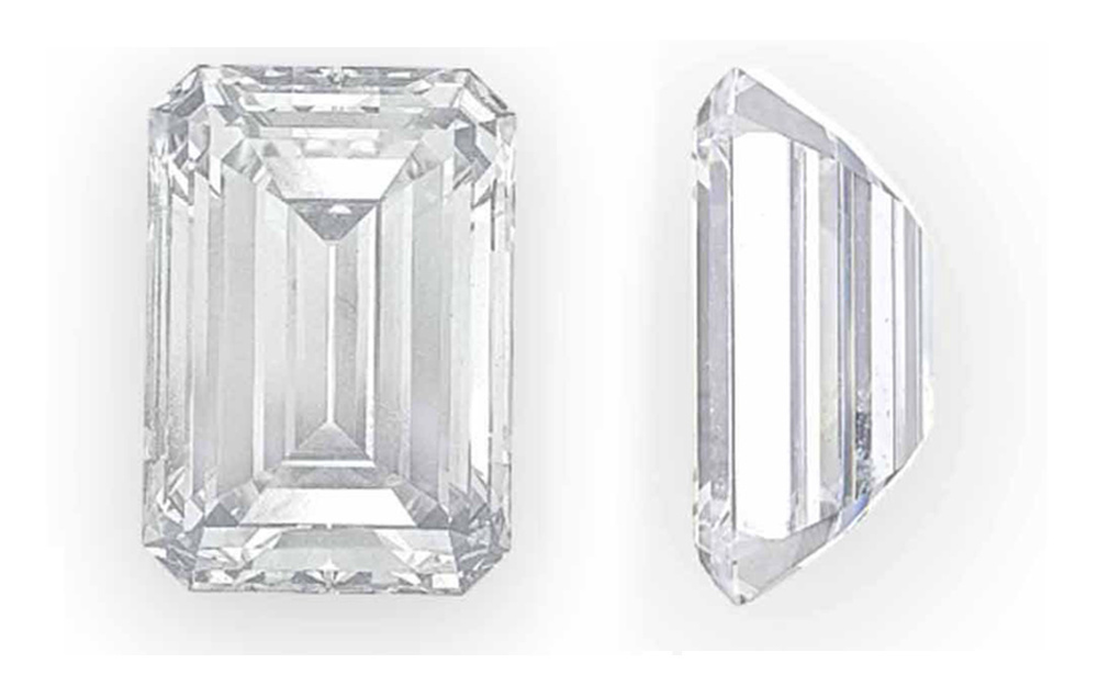 主石为一颗长方形切割钻石,重31.14ct,为D色 Type IIa 型钻石,净度为 VVS2。戒托采用铂金制作,并于两侧镶嵌两颗长方形切割钻石。