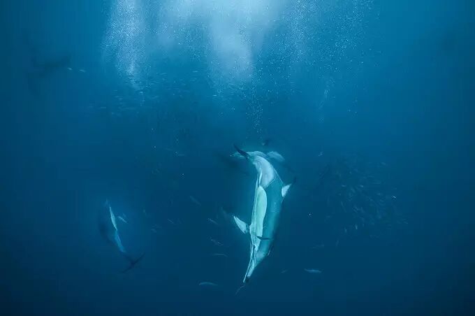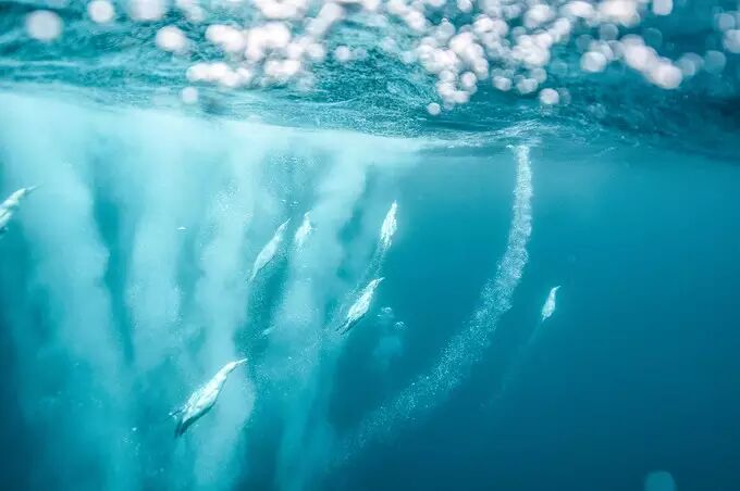 然而机警灵活的沙丁鱼也是躲避敌人的顶级高手,它们抱团行动一致迷惑和躲避对手。