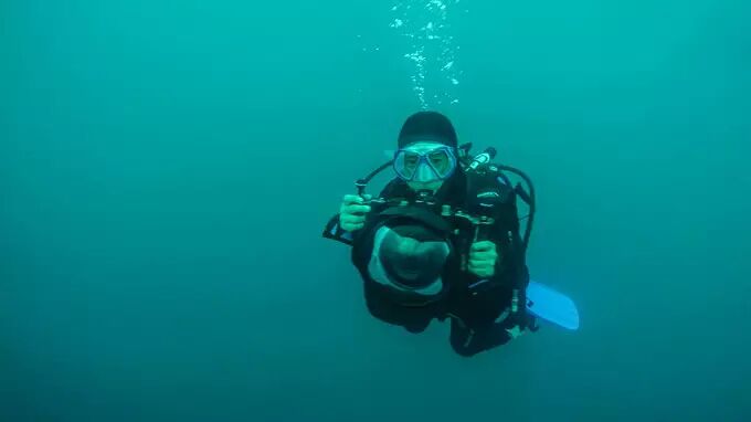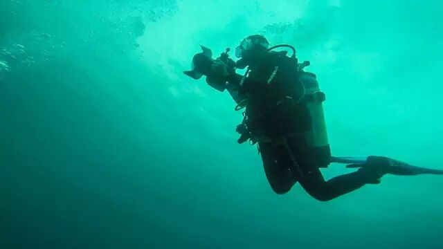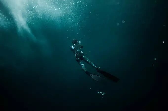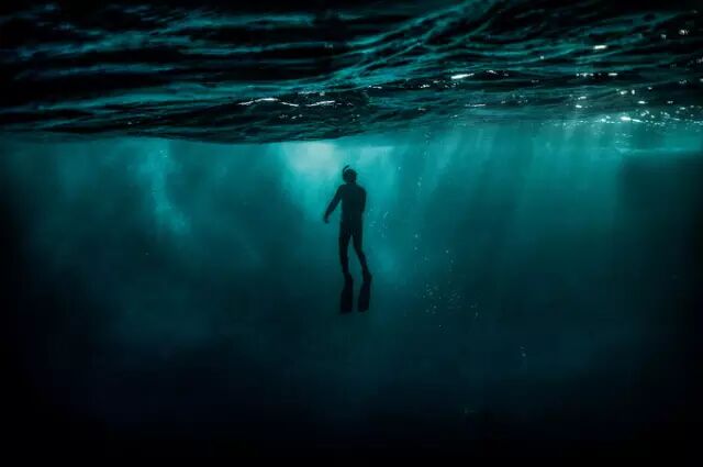 碰见一个自由潜高手,这样的画面,有没有点深海寻人的感觉?