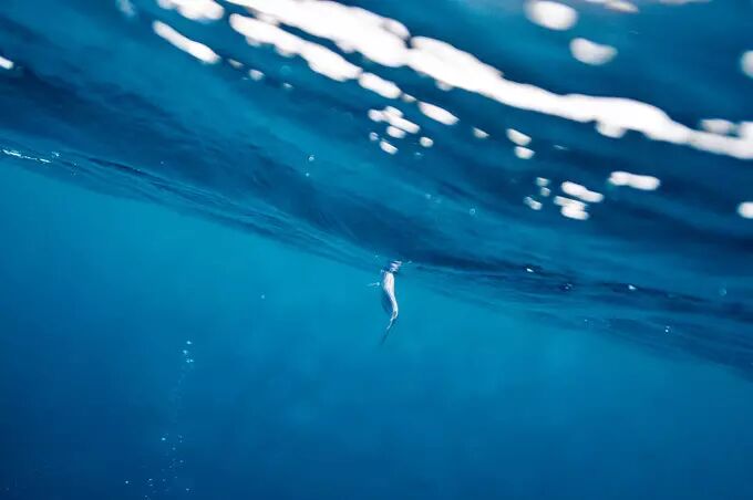 时我看到一条因为鲣鸟冲击而受伤的沙丁鱼,慢慢的脱离了群体,飘上水面,直觉告诉我,这可能就是它生命的最后几秒种了