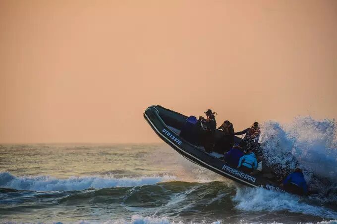 因为决定来南非,就得做好花钱买失望的准备,一无所获太常见。这里没有固定潜点的说法,都是沿着海岸线100公里范围内到处寻找目标,飞机在上空时常传来没有发现鱼群的消息,只有跟着船长的经验在颠簸的海上乱窜。风浪太大,冲锋艇也出不去,只能在岸上休息,但钱也还得照给。
