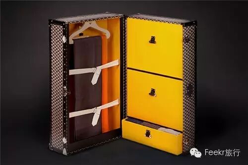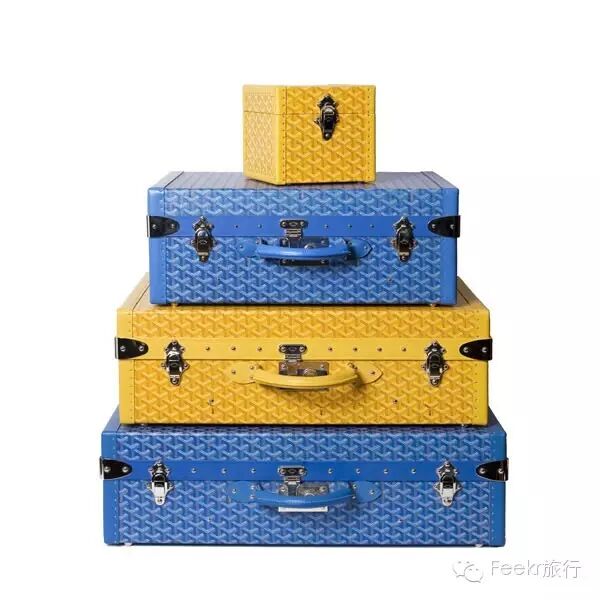 Goyard Bourget旅行箱,从细节到整体上都传承了其自19世纪以来沿袭至今的箱包技艺之美感与精致。将现代元素的便捷与人性化结合在了古典手工艺之上。技艺精湛、特色鲜明,以聚碳酸酯船体为造型,配有伸缩拉杆和四只多向轮盘。箱子的每一个棱角都进行了加固,开关拉锁使用传统的锁头式样,并配有一条带挂锁的皮革带,细节的设计非常到位。