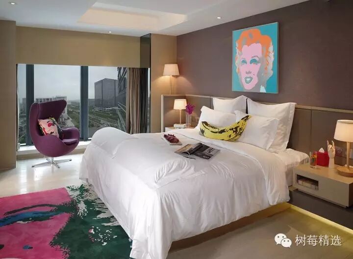 值得一提的是酒店除了一般艺术客房外,还设有Andy Warhol (安迪•沃霍尔)、毕加索、克林姆、达利等15间艺术大师房,里面陈列大师素描、版画等作品,让人实实在在的体验着置身于艺术寝宫的梦幻。