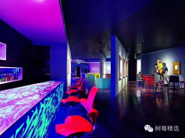 酒店总面积5.5万平方米,共16层,设340间艺术客房,4个风格迥异的艺术餐厅。