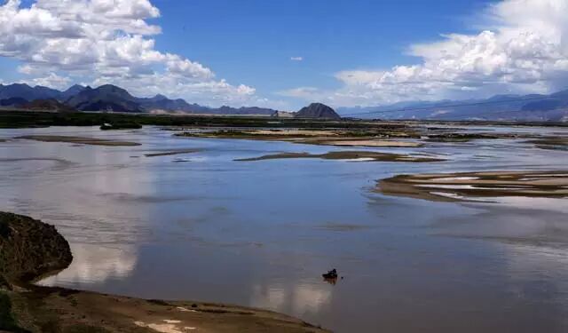到了桑耶渡口。我有些激动。江流宽阔。有不少人等待过渡到对岸。我没有要求停车,我想,这几天的行程里,我会来这里看看。我会从这里坐船去到对岸,去看看西藏历史上的第一座寺院桑耶寺。至今,在我家乡嘉绒地方,一位名叫白诺杂纳的高僧依然被高度崇拜。这个在远离西藏的大渡河流域最早传布藏传佛教文化的高僧,一千多年前,就在对岸的桑耶寺剃度为僧。是历史上藏族人中最早出家的“七觉士”之一。汽车开过渡口,我回身,看到渡船启动了,去往彼岸。天上大堆的白云倒映在江水里,那渡船仿佛在天上滑行一般。