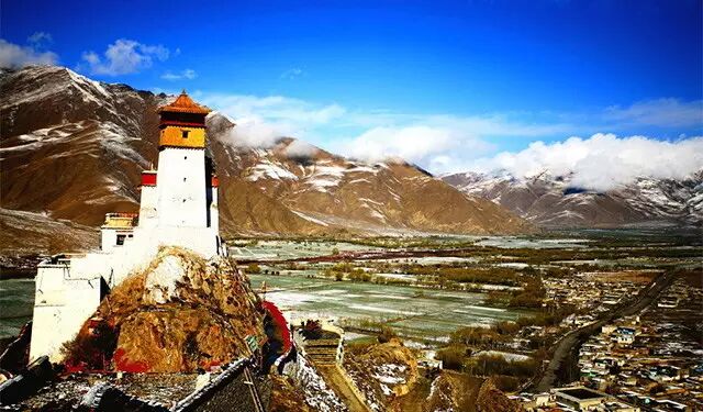 雅拉香波雪山海拔6636米。就是这座雪山,哺育了全长仅六十八公里的雅隆河。但就是这段短促的河流,在高原河谷中哺育了辉煌灿烂的吐蕃文明。