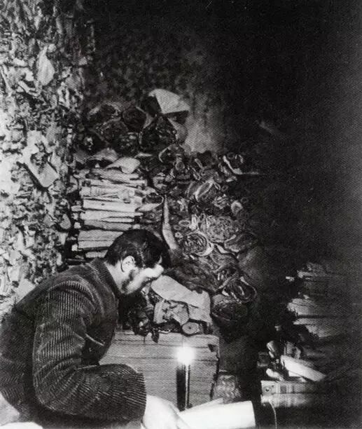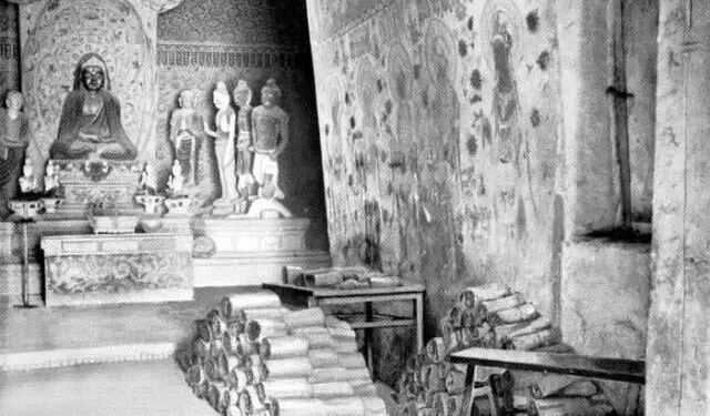 伯希和在敦煌莫高窟藏经洞内拣选文书